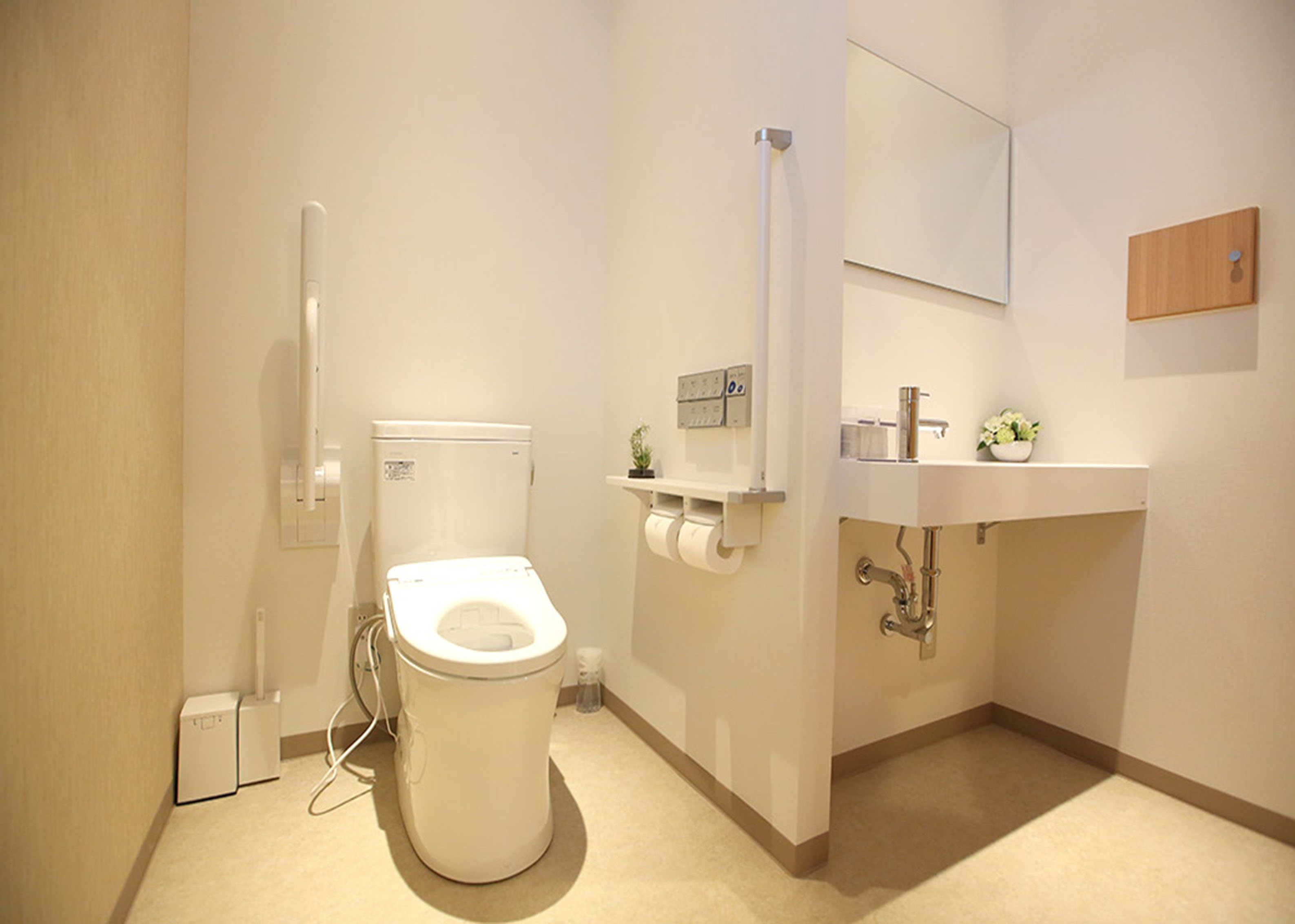 院内は全面バリアフリーに対応しています。介助が必要な方はスタッフがお手伝い致しますので、ご遠慮なくお申し出ください。